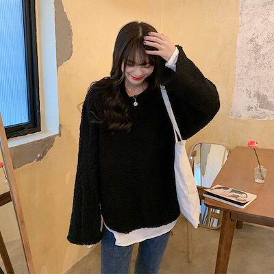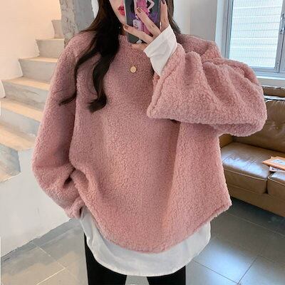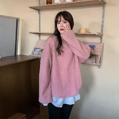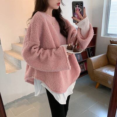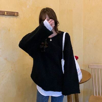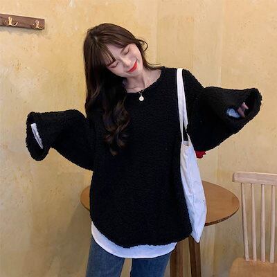 クーポン有ニットトップス レディース セーター 春 秋 冬 ひざ上 ミディアム丈 ミドル丈 裾長め お尻カバー ポッコリお腹カバー 長袖 ボリューム袖 クルーネック 丸首 Uネック ラウンドネック 襟