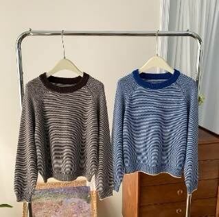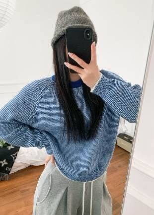 クーポン有トップス レディース ニット セーター プルオーバー 秋 冬 ミドル丈 普通丈トップス 長袖 ラグラン ラウンドネック 襟なし ストレート 伸縮性 カラバリあり ブルー 青 ブラウン 茶色
