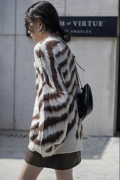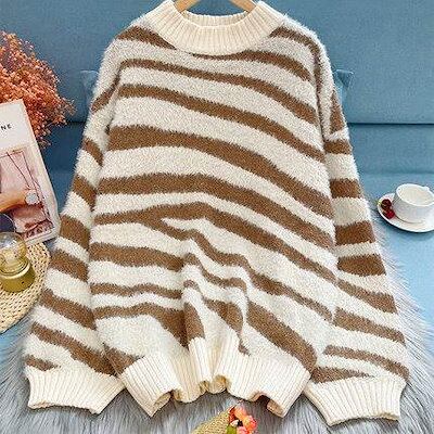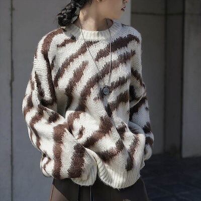 クーポン有チュニック オーバーサイズ バルーン レディース ニット セーター 着る毛布 膝上 ロング 丈長 長袖 ボリューム袖 萌袖 バルーン袖 Uネック 襟なし ノーカラー ワイド ストレート Iラ