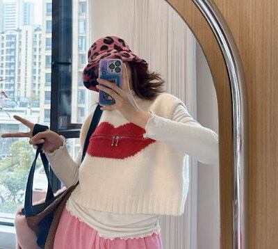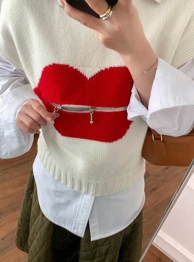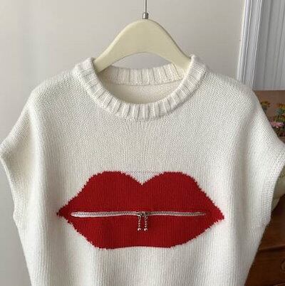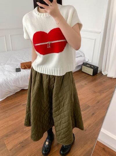 クーポン有トップス レディース ニット セーター プルオーバー ベスト 白トップス 春 ショート丈 短丈トップス 裾短め 半袖 ラウンドネック 襟なし ノーカラー ストレート オーバーサイズ ファスナ