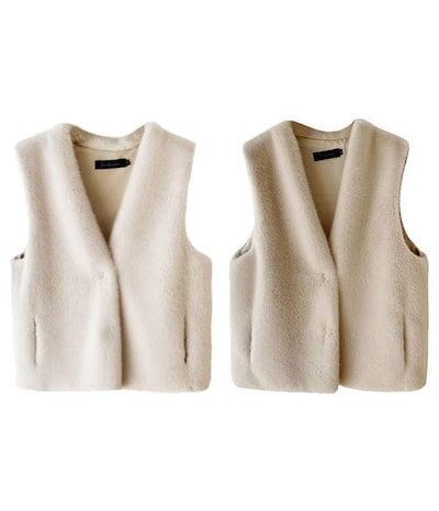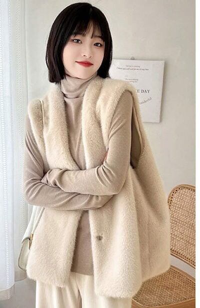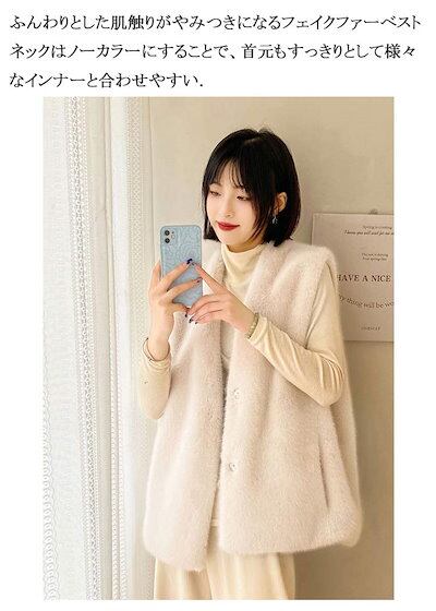 【2点購入25O円OFF】フェイクファー ベスト レディース 秋冬 ファーベスト 大きいサイズ ノーカラー ビッグVネック ロングファーベスト 前開き ヒップカバー 裏地 かわいい ロングベスト ジレ