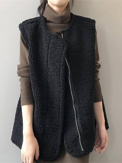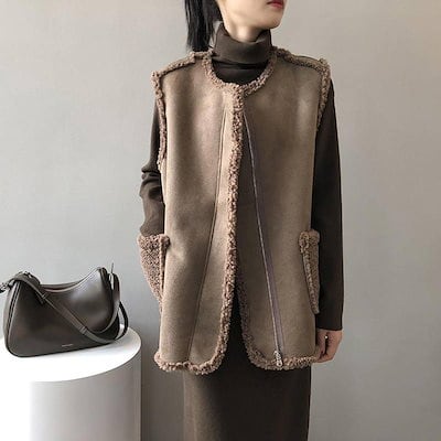 【2点購入25O円OFF】ベスト ジレ レディース 秋冬 前開き ファーベスト ムートンベスト リバーシブル ノーカラー アウター コート トップス 羽織り 羽織 ノーカラージャケット ロング丈 ロ