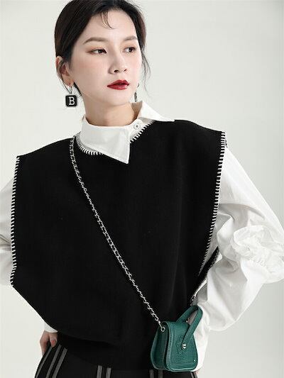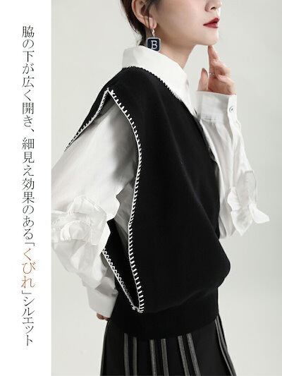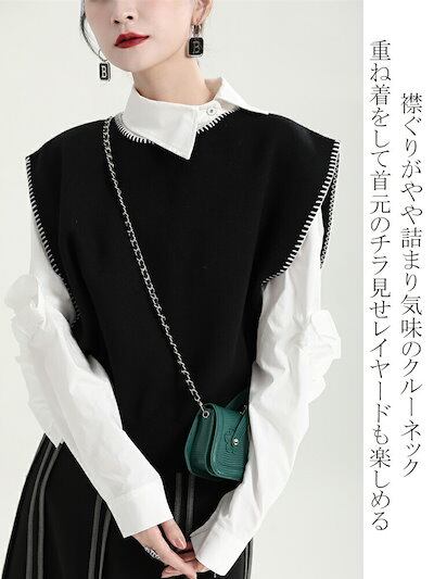 【2点購入25O円OFF】異色ロックミシン ニットベスト レディース 春 オーバーロック ニット ベスト 春ベスト 黒ベスト 羽織り コーデ 春服 レイヤード トップス ジレ ノースリーブ プルオーバ