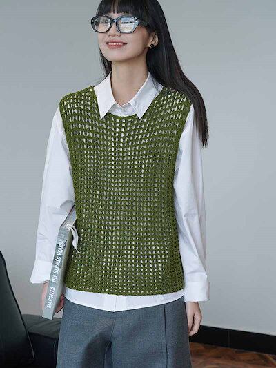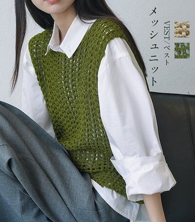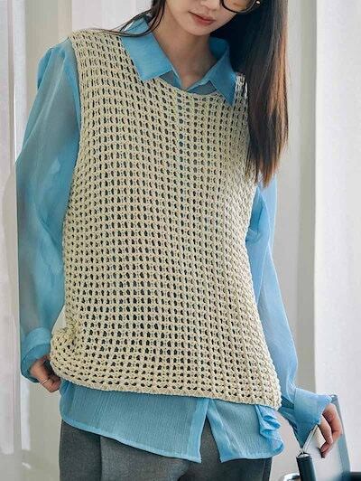 【2点購入25O円OFF】ニットベスト レディース メッシュ ニット 春 夏 秋 ベスト 透かし編み プルオーバー メッシュニット ニットトップス ノースリーブ トップス レイヤード 重ね着 ショート