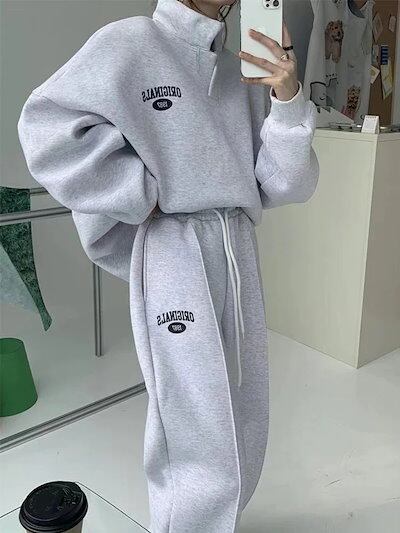 2024人気ブランドスウェットセットアップ上下二点肌にやさしい綿長袖立ち襟アウター無地スウェットパンツ韓国ファッションレディース夏服トレーニングウェアスポーツウェアレディース