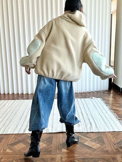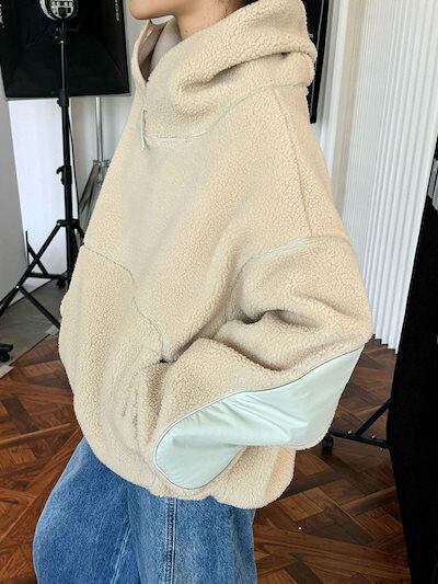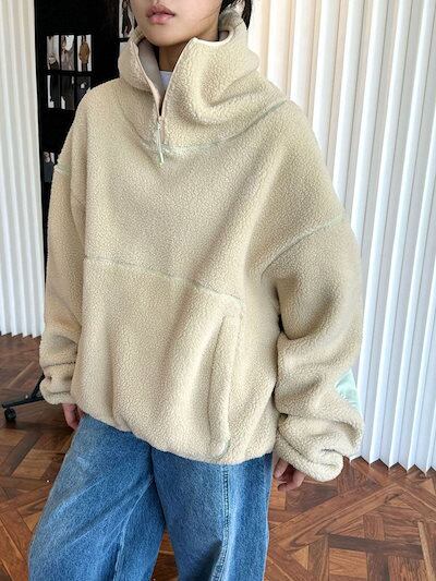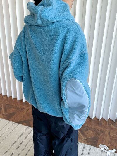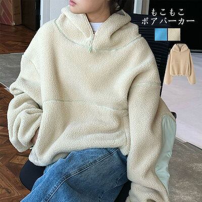 パーカー ボアパーカー ボア コート アウター プルオーバー トップス 大きいサイズ レディース フード パーカ トレーナー ファー ドロップショルダー 配色 ボアブルゾン 無地 リブ あったか 防寒