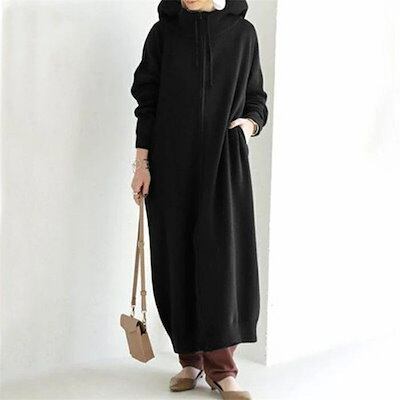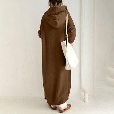 秋の新作 タイムセール 裏起毛 ロングパーカー レディース 秋冬 ワンピース マキシ丈 春 秋 前開き ジップアップ スウェットパーカ アウター フード付き ロングワンピース ロング コー 2枚購入で
