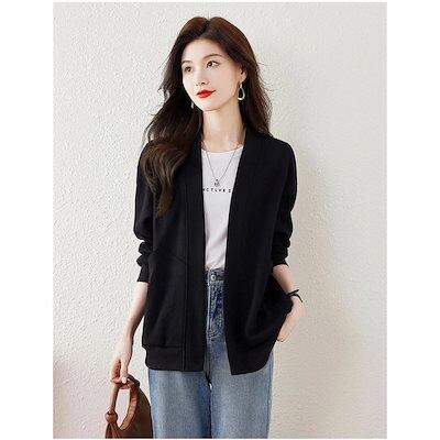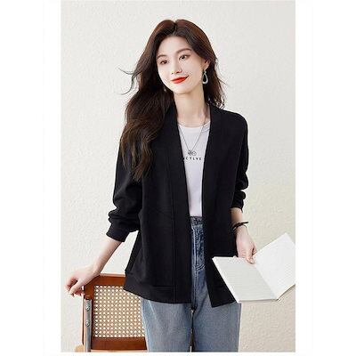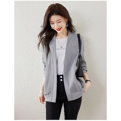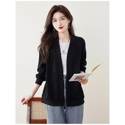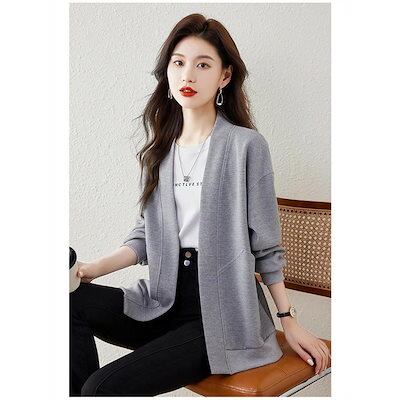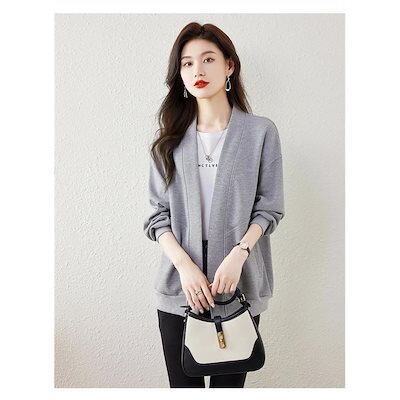 秋の新作 タイムセール カーディガン レディース ジャケット アウター ジャンパー 長袖 長そで vネック 上着 羽織り 重ね着 無地 大きいサイズ ゆったり 春 秋 ノーボタン スウェットカ 2枚購