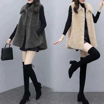 【迅速出荷】厚手 ベスト アウター フリース 厚手 大きサイズ ボアベスト フリースベスト 折り襟 ビッグカラー ボリューム アウトドア 無地 レディース 秋冬 暖かい ダブルボア L XL ボアジャ