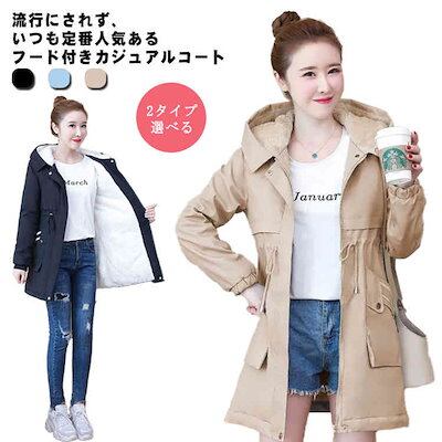 【迅速出荷】2タイプ選べる!マウンテンパーカー マウンテンコート レディースコート 裏ボア スプリングコート ミドル丈 アウター コート フード付き ロングコート 秋冬 冬服 着痩せ 大きサイズ 通勤
