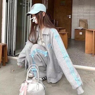 セットアップ レディース 春 ジャージ スウェット ジップアップ 長袖 ロングパンツ 上下セット スポーツ カジュアル 韓国ファッション 可愛い 通学 アウター 春服