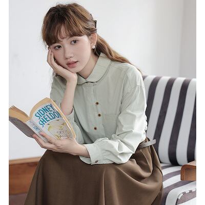 【会員専用 8% off】無地不規則ボタン 長袖 シャツ レディース 開襟シャツ 上着
