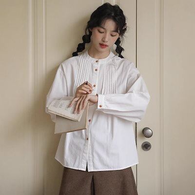 【会員専用 8% off】ボタンプリーツ 長袖 クルーネック重ね着 シャツ レディース 開襟シャツ 上着