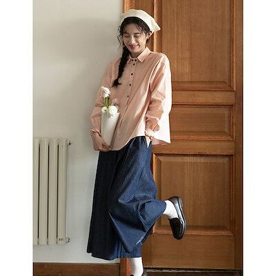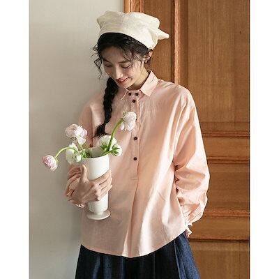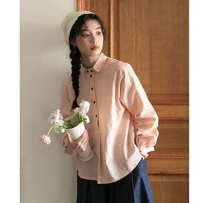 【会員専用 8% off】ロマンチックコーラルピンクボタンスリーブ 長袖 シャツ レディース 開襟シャツ 上着