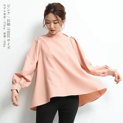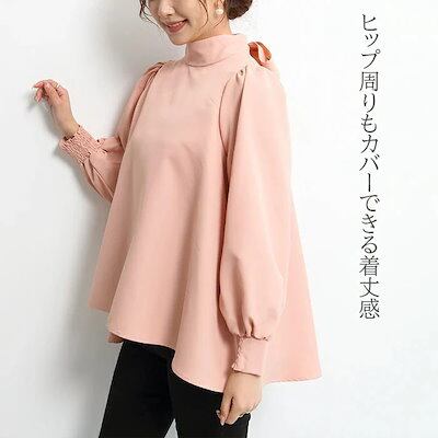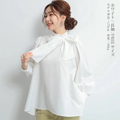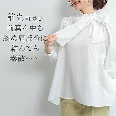 長袖シャツ レディース ブラウス トップス ボリューム袖 ランタンスリーブ スタンドカラー 襟元リボン 無地 カジュアル お出かけ おしゃれ きれいめ エレガント フォーマル 袖ボタン 2024