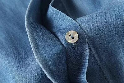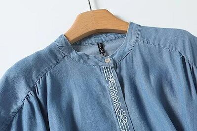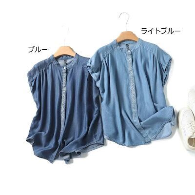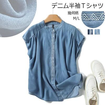 シャツ ブラウス デニムシャツ レディース 薄手 夏 デニム 前開き tシャツ 無地 フレンチ袖 半袖シャツ トップス ボタン隠し タック入り 刺繍 幾何 春 刺繍シャツ 可愛い 柔らかい 通気性 冷