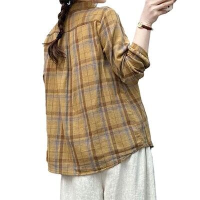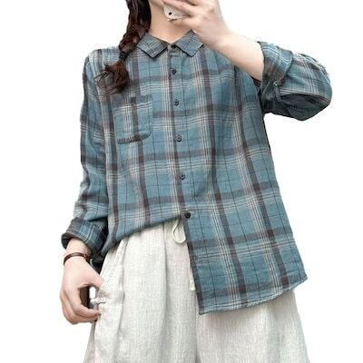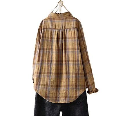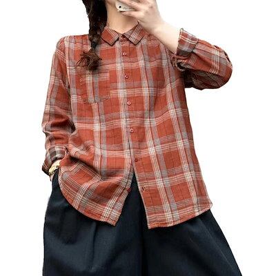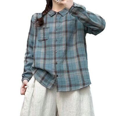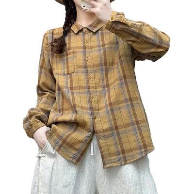 ダブルガーゼ シャツ レディース チェック 春 夏 秋 冬 S M L 綿100% 綿シャツ 着心地いい コットン ブラウス 2重ガーゼ 格子 タータンチェック 長袖 同色ボタン 膨らみ