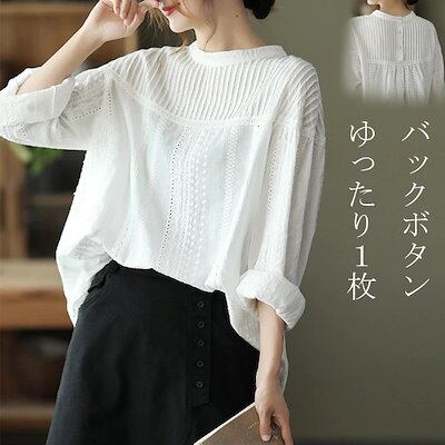 【急速出荷!】ブラウス レディース 透かし編み 長袖 プルオーバー ブラウス バックボタン コットンレース ゆったり 大きいサイズ クルーネック 薄手 綿 日焼け止め トップス シャツブラウス コット