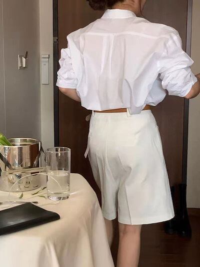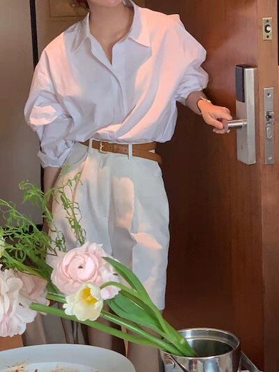 24トップス シャツ 襟 スタンダードカラー ストライプ ボタン 長袖 ゆったり 白 青 水色 おしゃれ かわいい 韓国ファッション レディース お出かけ
