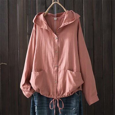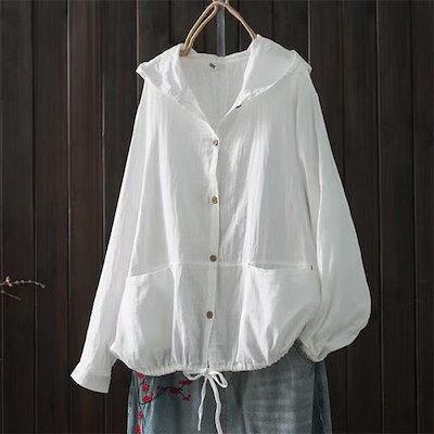 ガーゼ パーカー レディース 長袖 春 夏 ダブルガーゼ パーカー 無地 ボタン ガーゼパーカー ガーゼカーディガン 前開き フード シャツ ブラウス トップス ジャケット カジュアル ナチュラル 通