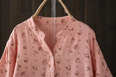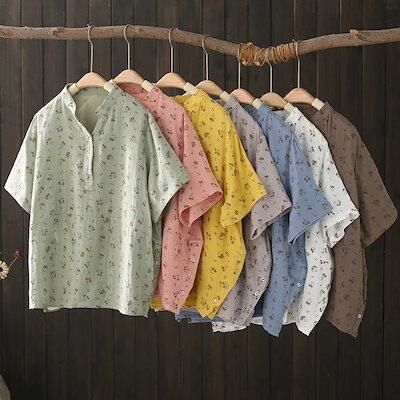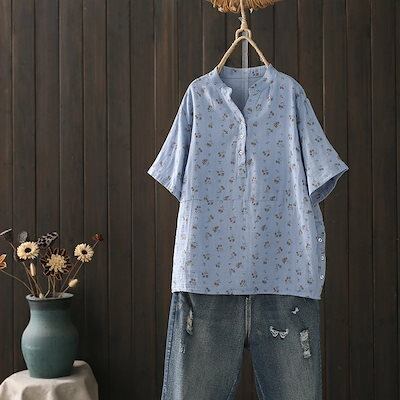 シャツブラウス シャツ ブラウス レディース 夏 半袖 カットソー 綿シャツ トップス チュニック 綿 コットン ダブルガーゼ 立ち襟 ボタン 小柄 ゆったり 体型カバー 通勤 カジュアル 可愛い プ