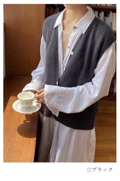 【2点購入25O円OFF】ニットベスト レディース 前開き ニット ベスト トップス ボタン リブ ニットトップス 体型カバー カーディガン ノースリーブ シンプル カジュアル ナチュラル レイヤー