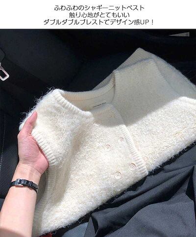 【2点購入25O円OFF】ニットカーディガン レディース ノースリーブ シャギー ジレ 厚手 ダブルブレスト ボタン コート ラウンドネック ニットベスト モヘア トップス ニット 重ね着 ベスト