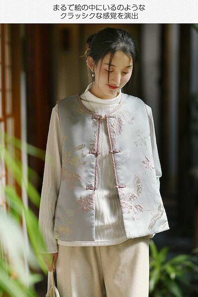 【2点購入25O円OFF】コート レディース チャイナボタン 中綿ベスト ノースリーブ 中綿 ショット丈 ベスト ボタン 前開き ジレ ラウンドネック 民族 トップス 重ね着 エスニック チョッキ