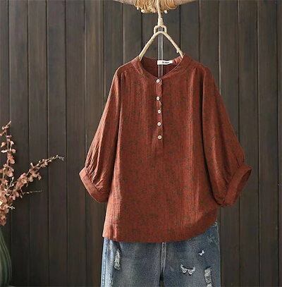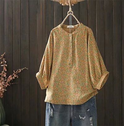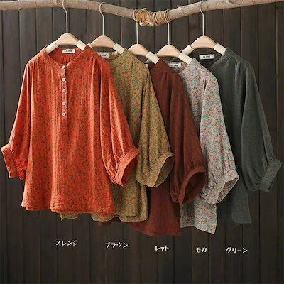 シャツ シャツブラウス レディース 夏 五分袖 カットソー 綿シャツ ブラウス トップス チュニック 綿 コットン ダブルガーゼ 小柄 立ち襟 ボタン ゆったり 体型カバー カジュアル 通勤 母 プレ