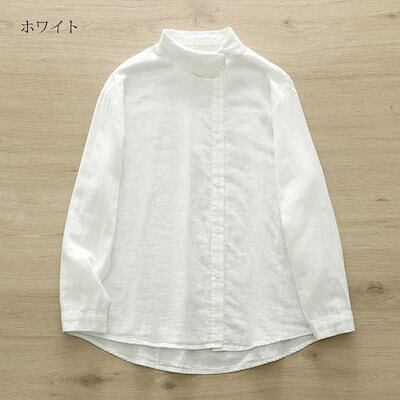 シャツ レディース 長袖 トップス 春 ブラウス 丸襟 シャツブラウス 斜めボタン 綿シャツ 白シャツ ガーゼシャツ ダブルガーゼ ガーゼ 綿 無地 おしゃれ きれいめ ゆったり カジュアル 通勤 大
