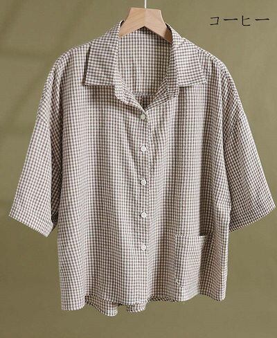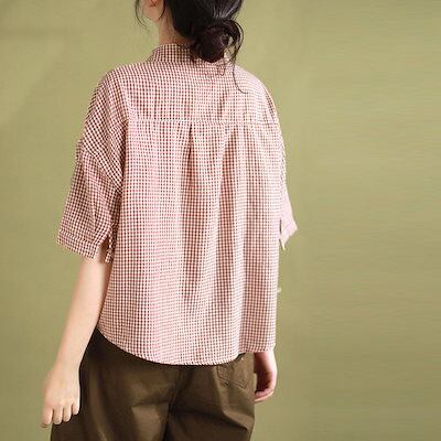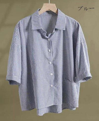 チェック シャツ 半袖 レディース 襟付き ブラウス 綿 チェックシャツ 夏 トップス 前後差 前開き シャツブラウス 半そで ショート丈 半袖ブラウス 綿 チェック 折襟 可愛い ボタン 吸湿 速乾
