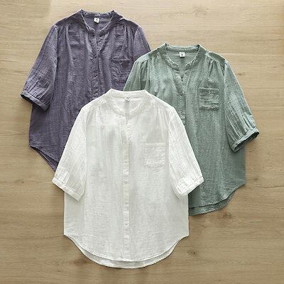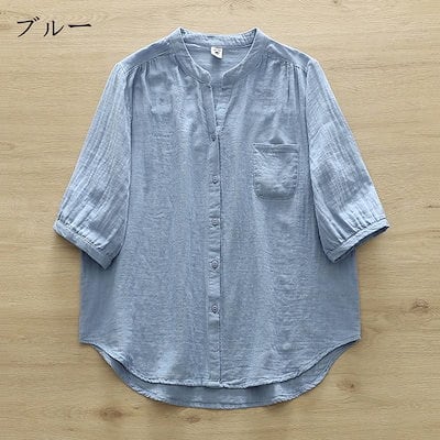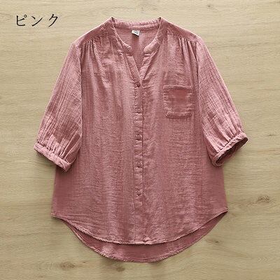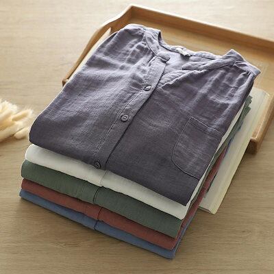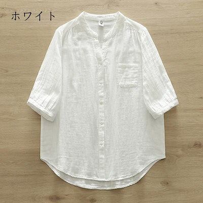 半袖シャツ 綿 ブラウス シャツ 半袖 キーネック レディース トップス シャツブラウス ガーゼシャツ 2重ガーゼ 綿シャツ 白シャツ 夏 春 半袖ブラウス ギャザー入り ボタン 前開き カジュアル