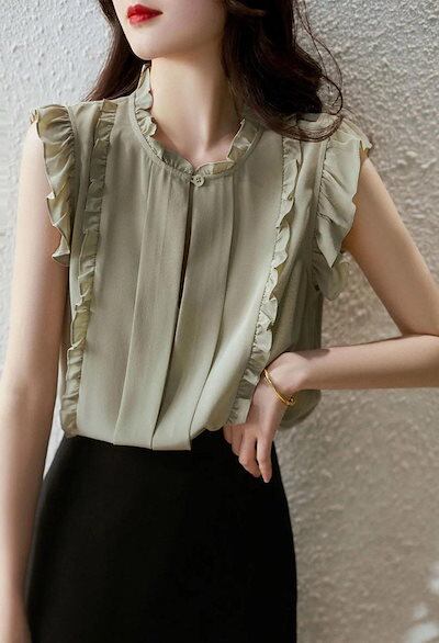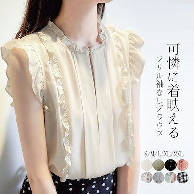 ブラウス フリル ノースリーブ シフォンブラウス きれいめ シャツ シフォン 夏 レディース プルオーバー 夏シャツ ボタン タックシャツ 水玉柄 プリント ドッキング トップス 白 花柄 袖なし シ