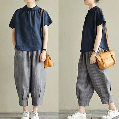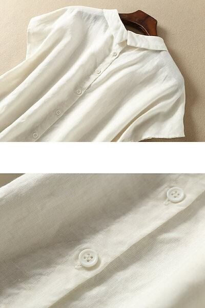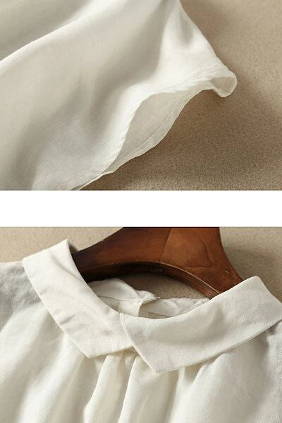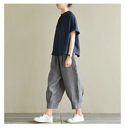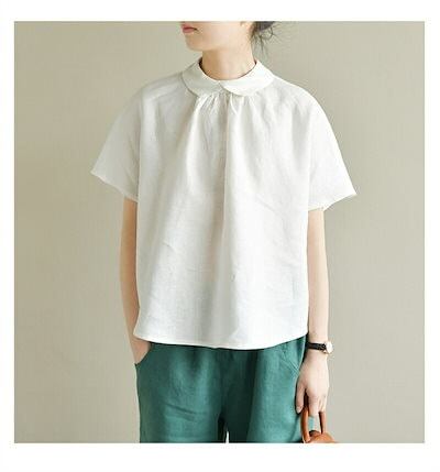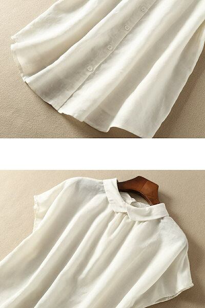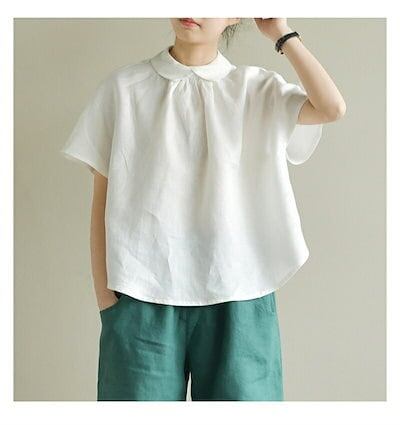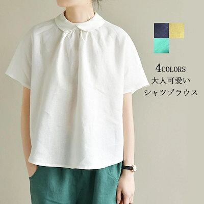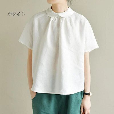 シャツ レディース 半袖 ブラウス シャツブラウス 折り襟 タック ギャザ入り リバーシブル 麻 リネン 半袖シャツ 白シャツ ボリューム袖 ドルマン バルーン袖 前開け ボタン止め 夏シャツ トッ
