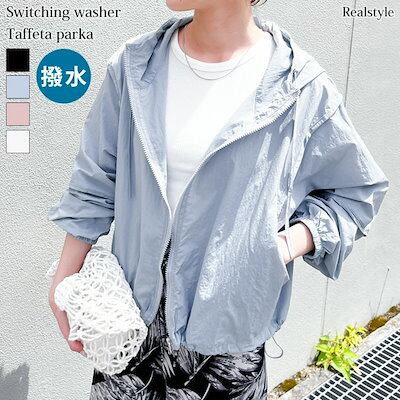 リアル スタイルワッシャータフタサイドポケット切替ジップアップ撥水パーカー レディース 春 夏 薄手 UVケア 長袖 アウター ゆったり ブルゾン ジャンパー 羽織り 上着 前開き 軽量 軽い