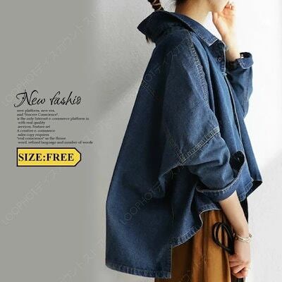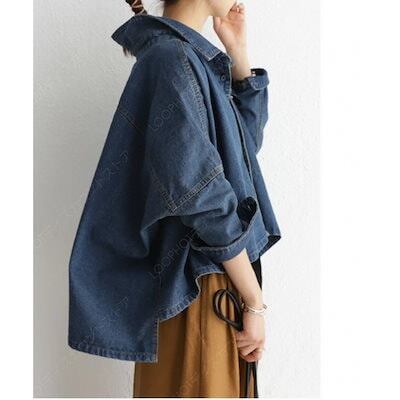 秋冬日韓新作デニムショートジャケットレディースカジュアルゆったりデザイン感シャツジャケット無地-53