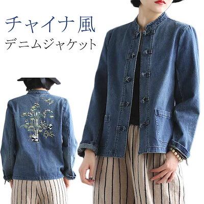 デニム ジャケット ノーカラー レディース チャイナ風 ジーンズ アウター Gジャン 羽織り 婦人服 春 秋 大人カジュアル きれいめ おしゃれ オールシーズン 大きいサイズ S-4XL 30代 40