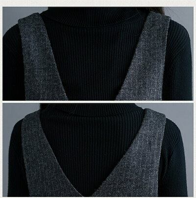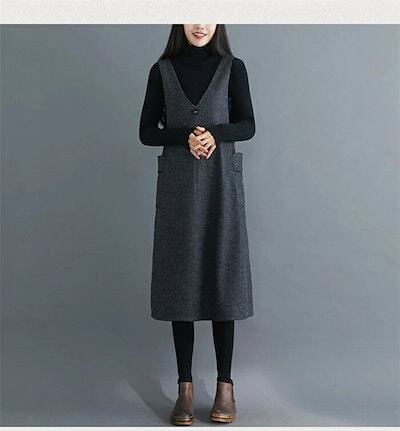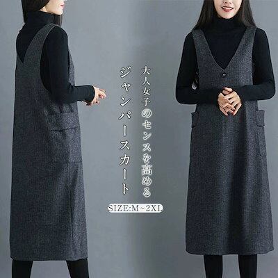 即納可能ジャンパー スカート 秋 冬 ワンピース 秋 レディース Vネック コンビネゾン ジャンスカ ボタン ポケット ストライプ ツイード スカート オールインワン タンクワンピース 重ね着 大人