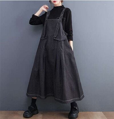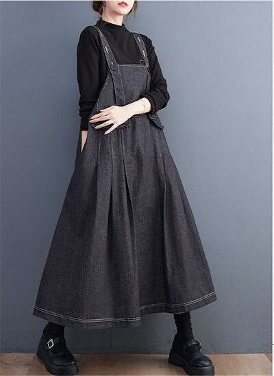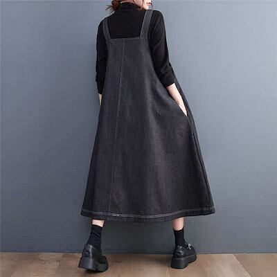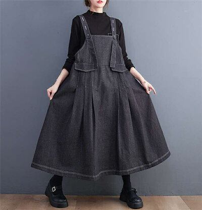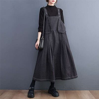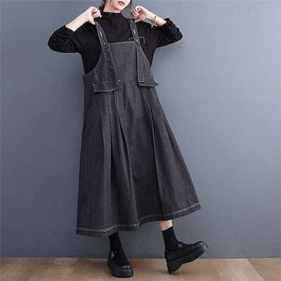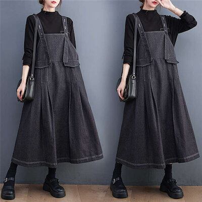 期間限定サロペット ワンピース デニム ジャンパースカート オーバーオール オールインワン デニム ワンピース ロング丈 ノースリーブ タックワンピース 体型カバー レディース ワンピース 春 秋 ワ