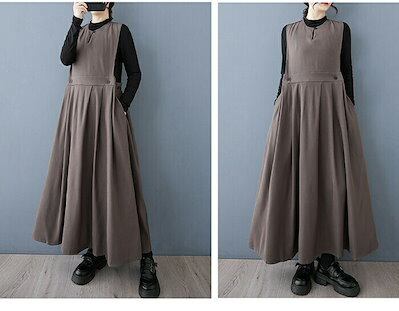 コストパフォーマンスジャンパー スカート サロペット ワンピース レディース ラウンドネック フレアワンピース ノースリーブ 無地 ジャンスカ ベストワンピース ロングワンピース ミモレ丈 レイヤード