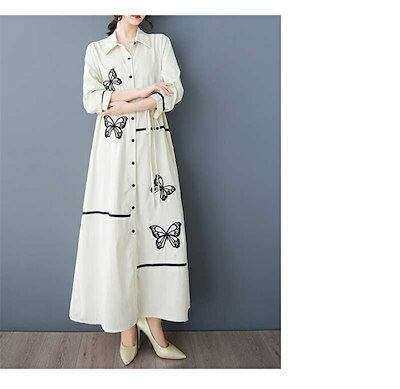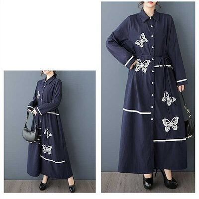 品質良い シャツワンピース ロング ワンピース 刺繍 レディース シャツワンピ ロングワンピース ロング丈 長袖 シンプル 春 秋 ゆったり 大きいサイズ 体型カバー おしゃれ 20代 30代 40代