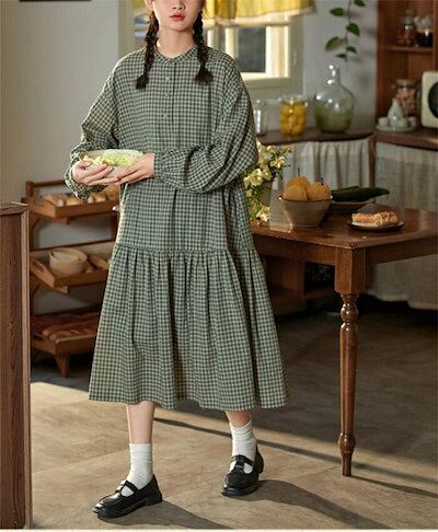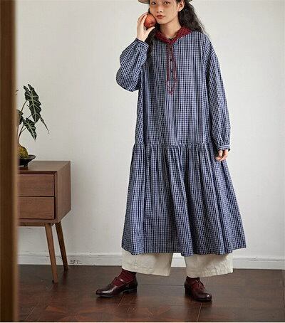 高評価多数シャツワンピース 森ガール ワンピース ロング ワンピース チェック 長袖 レディース 体型カバー ワンピース ギンガムチェック キレイめ ロングワンピ ミモレ丈 Aライン ゆったり カジュ