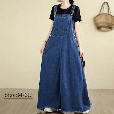 【毎日厳選 】 デニム ジャンパー スカート サロペット ワンピース ロング ワンピース デニム ワンピース 春 夏 秋 レディース キャミワンピース オールインワン ジャンパーワンピース 体型カバー