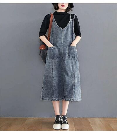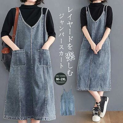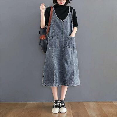 初回限定サロペット ワンピース デニム ジャンパースカート オーバーオール オールインワン デニム ワンピース ロング丈 ノースリーブ 体型カバー レディース ワンピース 春 夏 秋 ワンピース 無地