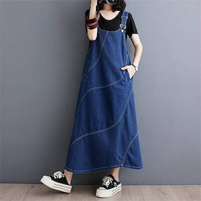 季節限定サロペット ワンピース レディース デニム ジャンパースカート オーバーオール オールインワン デニム ワンピース ロング丈 ノースリーブ 体型カバー ロング ワンピース 春 夏 秋 ゆったり