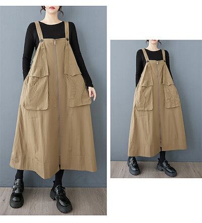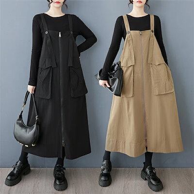 初回限定ジャンパー スカート レディース 春 夏 秋 冬 サロペット ワンピース ジャンスカ ワンピース ロング ワンピース ロング丈 ノースリーブ キャミワンピース 無地 ポケット付き ロングワンピ
