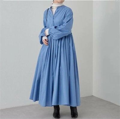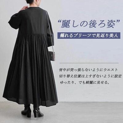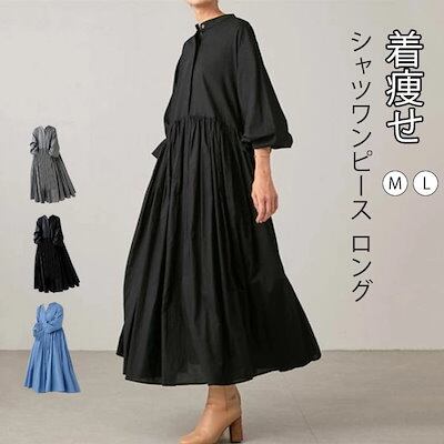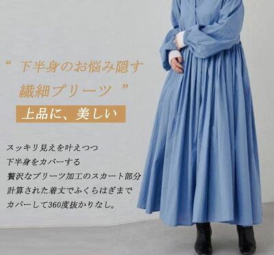 大安売り[短納期]シャツワンピース 長袖 レディース 大きいサイズ ロング マキシワンピース ロングシャツワンピ ぽわん袖 バルーンスリープ プリーツワンピ プリーツ きれいめ マキシ丈 無地 ワンピ