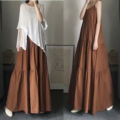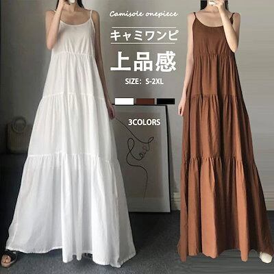 【NEWカラー追加】ノースリーブワンピース ティアード レディース オーバーサイズ リラックス ロングワンピース ノースリーブ キャミソール キャミソールワンピース ティアードワンピース 体型カバー