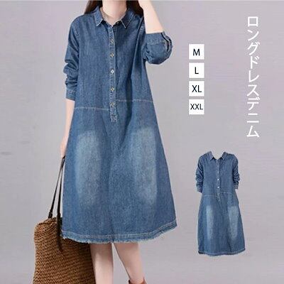 数量限定 デニムワンピース ロングシャツワンピース デニム デニムロングシャツワンピース 長袖/七分 羽織り きれいめ レディース 春 夏 秋 ロング ビッグシルエット 大きいサイズ マキシ丈 Aライ