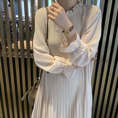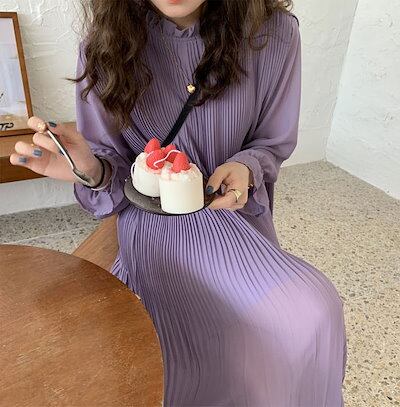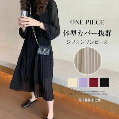 超人気,高評価!!シフォンワンピース マキシ丈 ふんわり ビッグシルエット ギャザーワンピース 長袖 Aライン 春秋 シフォン 秋 ロングワンピース レディース 体型カバー 無地 カジュアル 大きいサ